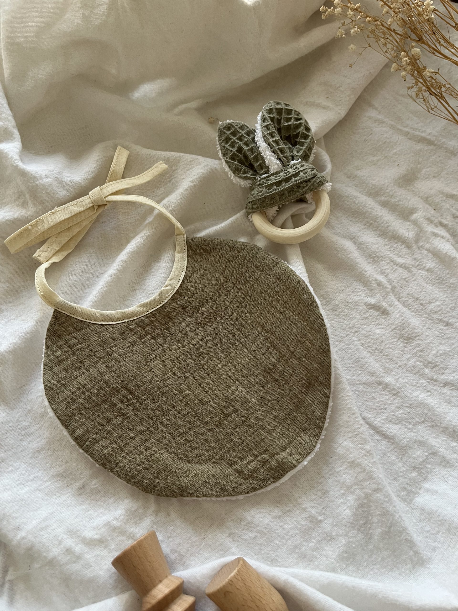 Pequeñito y con forma redonda, este babero es perfecto para los primeros meses como babero anti-manchas y, a medida que crece, se convierte en un práctico salvababas.
