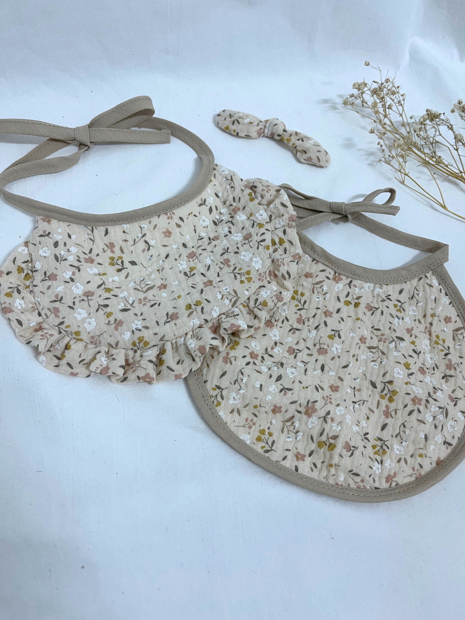 Este Bebé Pack incluye dos baberos confeccionados a mano pensados para acompañar al bebé desde el nacimiento hasta los 15-18 meses aproximadamente.