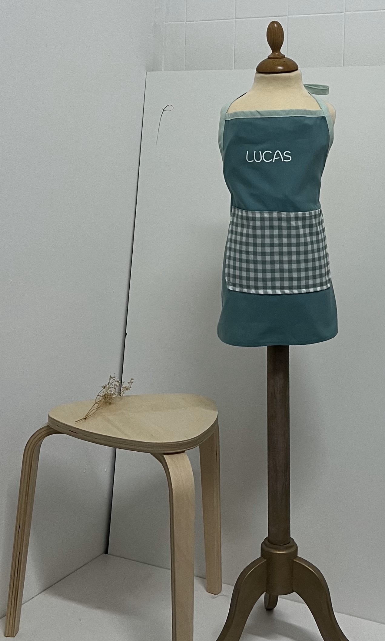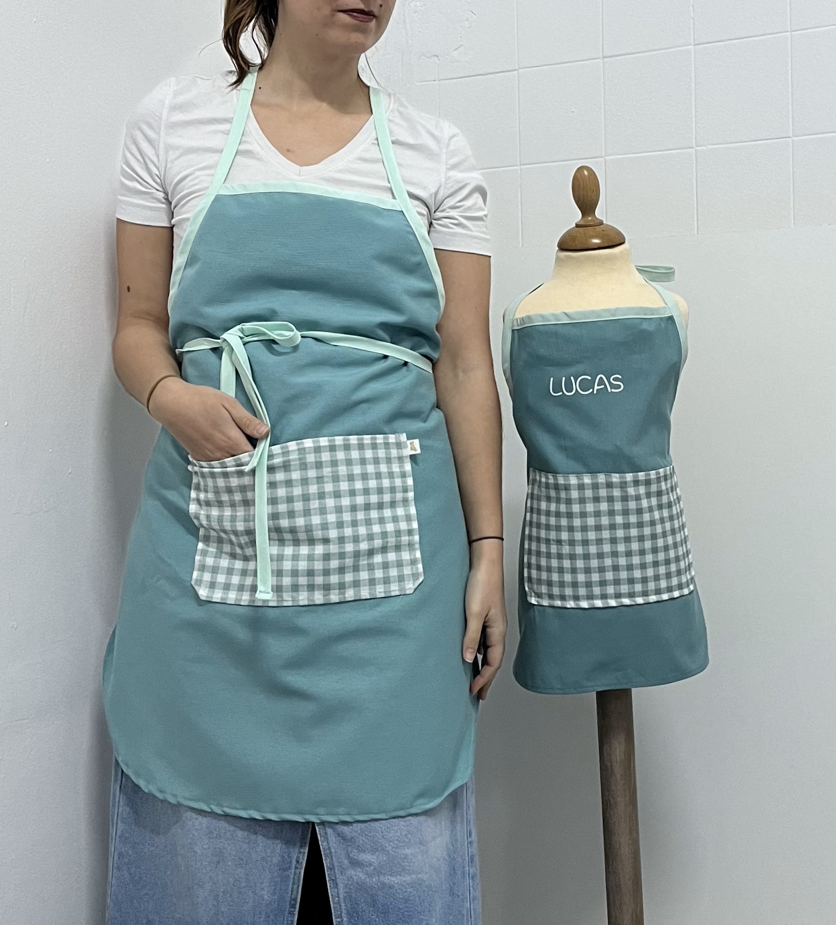 Este delantal azul es perfecto para grandes y pequeños chefs.