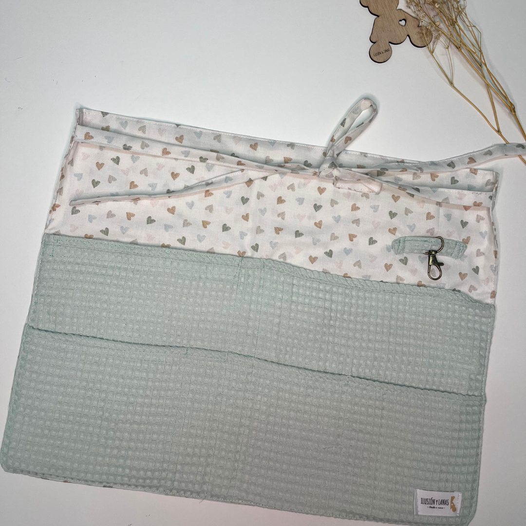 🖊️ Bolsillo para bolígrafos + colgador para llaves + bolsillo con cierre de velcro para objetos personales.