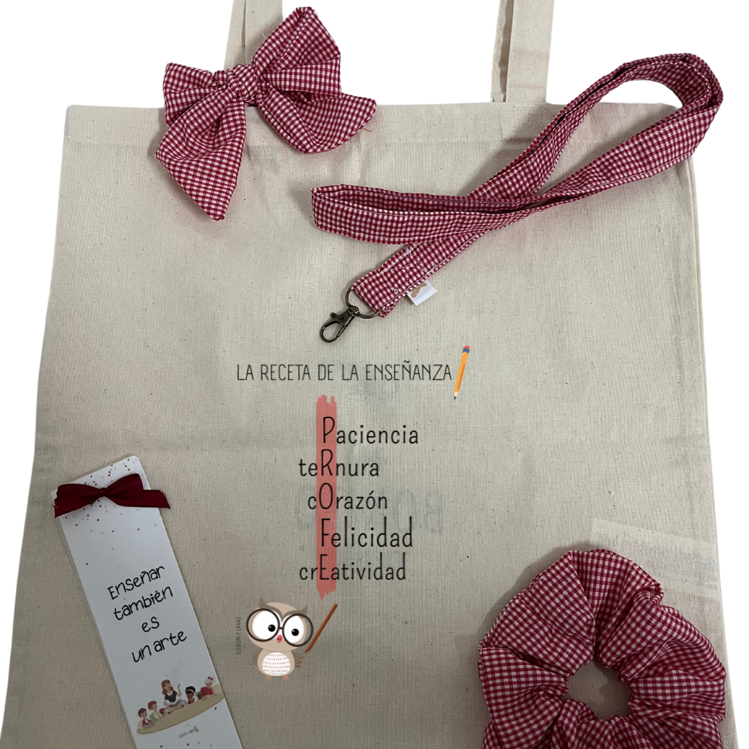 Cada elemento está confeccionado a mano, con tejidos seleccionados por su suavidad, calidad y estilo. Es un regalo ideal para hacer entre varios alumnos o para quienes quieren agradecer de forma especial y completa.